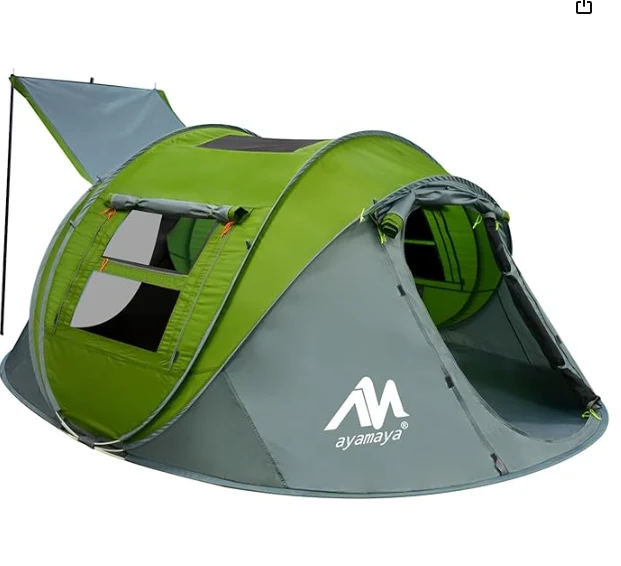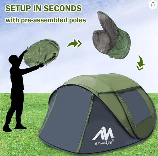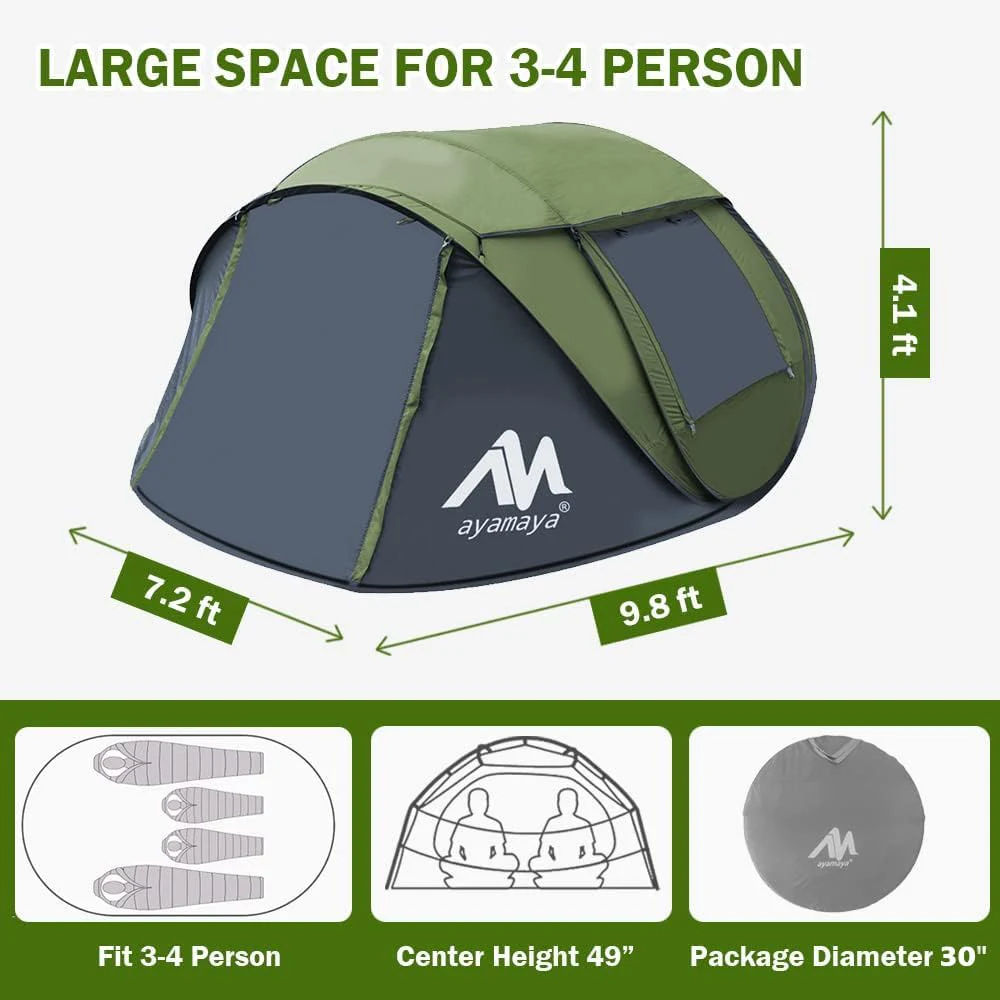 தானியங்கி வேகமான திறந்த முகாம் கூடாரம், 4 நபர் முகாமிடுவதற்கான கூடாரங்களை பாப் அப் நீர்ப்புகா உடனடி குடும்ப கூடாரங்கள் ஸ்கைலைட் & நீக்கக்கூடிய மழை பெய்யும், 2 கதவுகளுடன் பெரிய அளவை மேம்படுத்தவும் -துருவங்களுடன் கூடிய ஈஸி செட் பீச் கூடாரம்