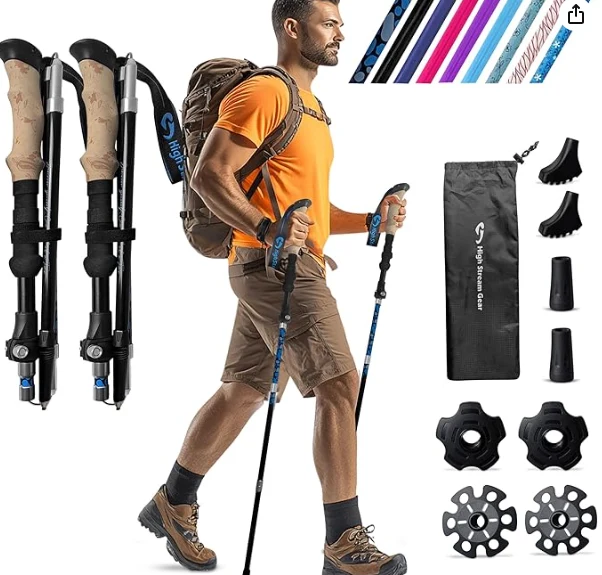 மடக்கக்கூடிய நோர்டிக் ஹைக்கிங் கம்பம். பேக் பேக்கிங், உடற்பயிற்சி மற்றும் பயணத்திற்கான மிரட்டக்கூடிய ஹைகிங் கம்பங்கள், 2 அலுமினிய நோர்டிக் மடக்கக்கூடிய மலையேற்ற துருவங்களின் தொகுப்பு