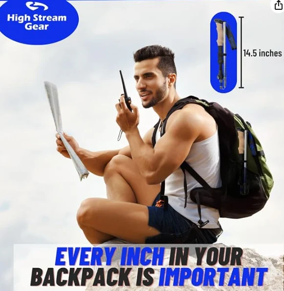 ஹிக்கியர்ஸிற்கான ஹைகிங் துருவங்கள் 37 செ.மீ (14.5 அங்குலங்கள்) வரை சரிந்து, 10 அவுன்ஸ் மட்டுமே எடையுள்ளவை, ஒவ்வொன்றும் உங்கள் அத்தியாவசிய மற்றும் தனிப்பட்ட கியருக்காக உங்களை விட்டுச் செல்கின்றன.