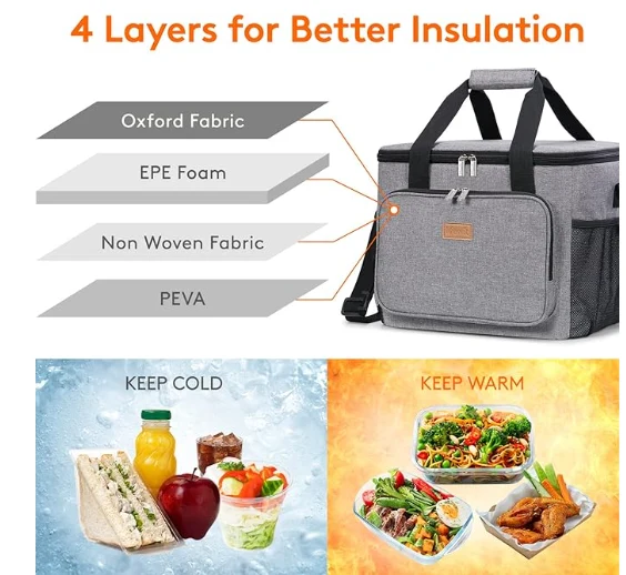 காப்பிடப்பட்ட சுற்றுலா பை, மதிய உணவு பை ஆகியவை காப்பிடப்பட்ட பொருட்களால் ஆனவை, இது உணவு மற்றும் பானங்களை 5 மணி நேரத்திற்கும் மேலாக குளிர்ச்சியாகவோ அல்லது சூடாகவோ வைத்திருக்க முடியும். தவிர, உள்துறை புறணி உணவு தர பெவா படலத்தால் ஆனது, எனவே உங்கள் உணவை எந்த கவலையும் இல்லாமல் நேரடியாக பையில் வைக்கலாம். உள்ளமைக்கப்பட்ட 6 மிமீ EPE நுரை உங்கள் கொள்கலன்கள், உணவு மற்றும் பானங்களுக்கு சிறந்த பாதுகாப்பை வழங்குகிறது.